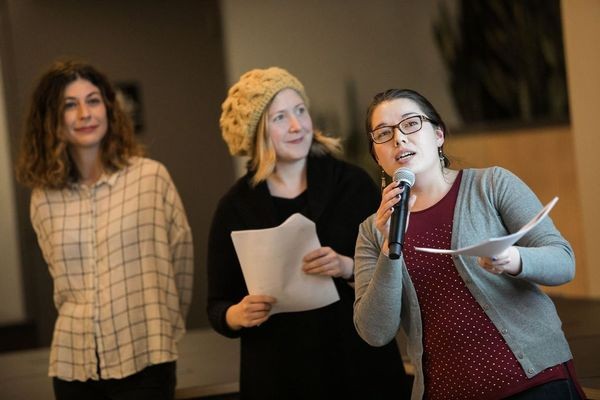 When the team before you begins their Q&A session, your team should begin gathering your things, if needed, and assemble towards the front of the audience seating area.