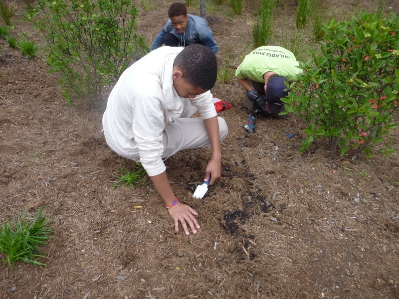 In cities like Philadelphia, rain falls on buildings, parking lots, and streets before draining into the sewer, carrying trash and other pollutants with it. Green stormwater infrastructure (GSI) are things like rain gardens and green roofs and stormwater planters that provide rainwater more opportunities to be absorbed by soil and plants, cutting down on pollutants that enter Philadelphia sewers.